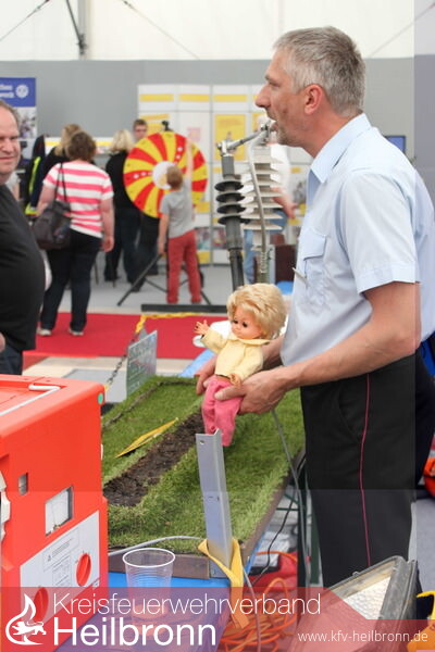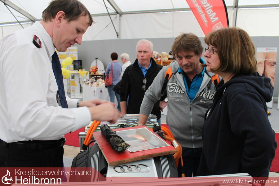 Mit einer ganztägigen Aufklärung über Gefahren durch elektrischen Strom präsentierte sich die Neckarsulmer Feuerwehr am Eröffnungstag, 26. April, auf einem über 100m² großen, zentral gelegenen, Informationsstand der rechts- und linksrheinischen Hilfs- und Rettungsorganisationen in Halle 25 auf dem Maimarkt.