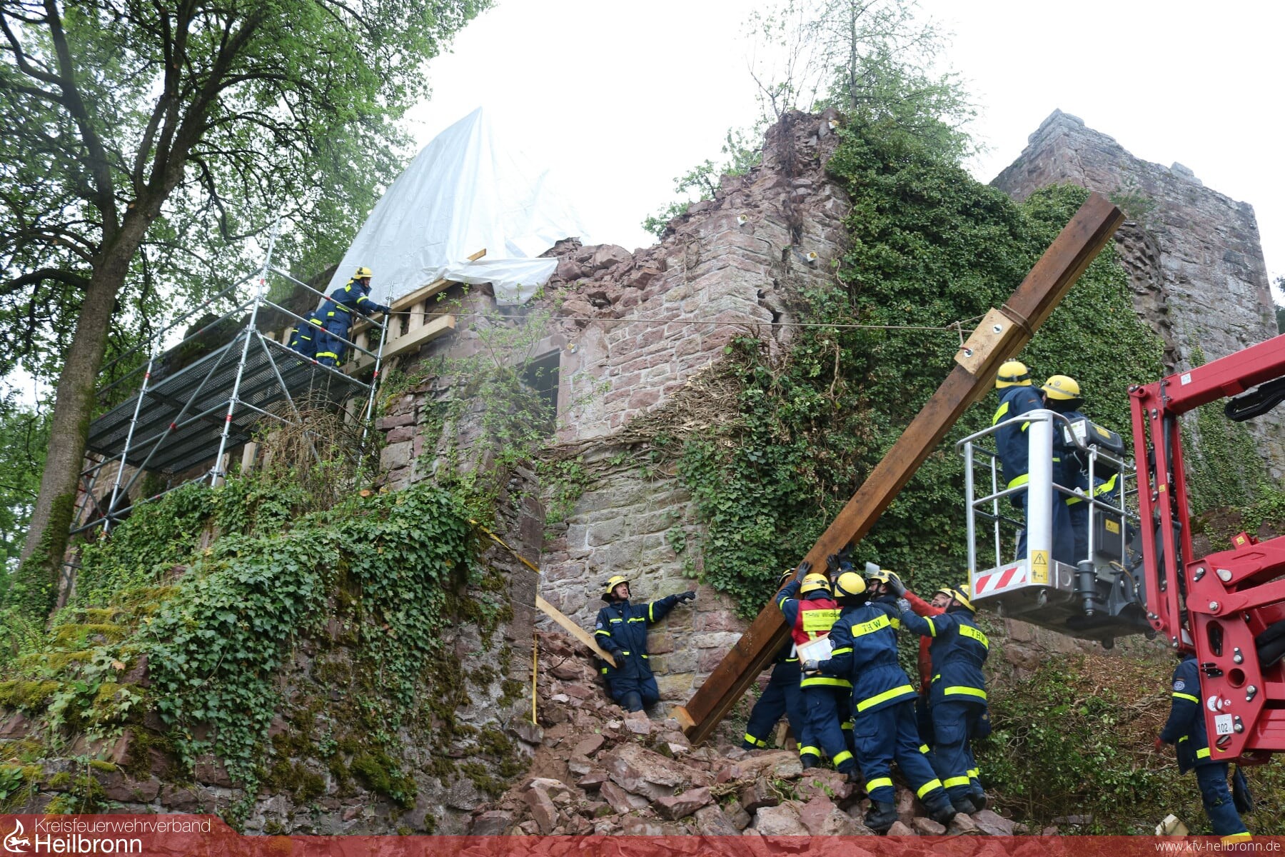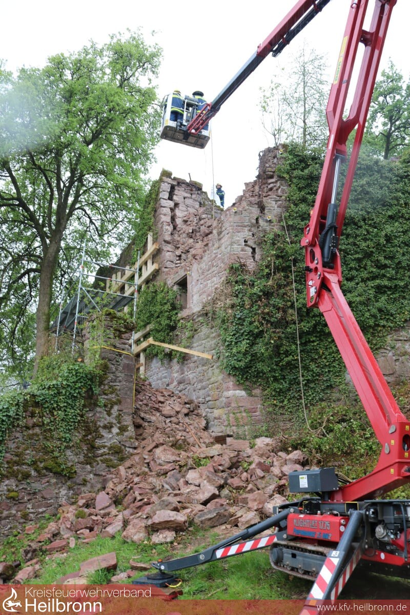 Auf Grund der standortbedingten schlechten Geländeeigenschaften der Höhenburg und dem regnerischen Wetter wurden die Absicherungsarbeiten erheblich erschwert und machten dies zu einem sehr interessanten Einsatz.