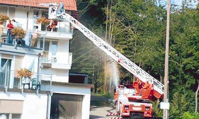 Eine Person machte sich auf einem Balkon im zweiten Stock lautstark bemerkbar und drohte zu springen. An gleicher Stelle fuhr ein Rollstuhlfahrer aus Verzweiflung auf dem Balkon hin und her. Diese Personen hatten die Feuerwehrmänner aus Obersulm mit der Drehleiter schnell in Sicherheit gebracht. Die anderen Einsatzkräfte hatten sich auf die Rettung der vier anderen Personen konzentriert. Mittlerweile hatte sich der Brand dem Übungsszenario entsprechend im Wald hinter dem Gebäude ausgebreitet. Für die Einsatzleitung Grund genug, das Gebäude anhand eines Notfallplanes zu evakuieren.
