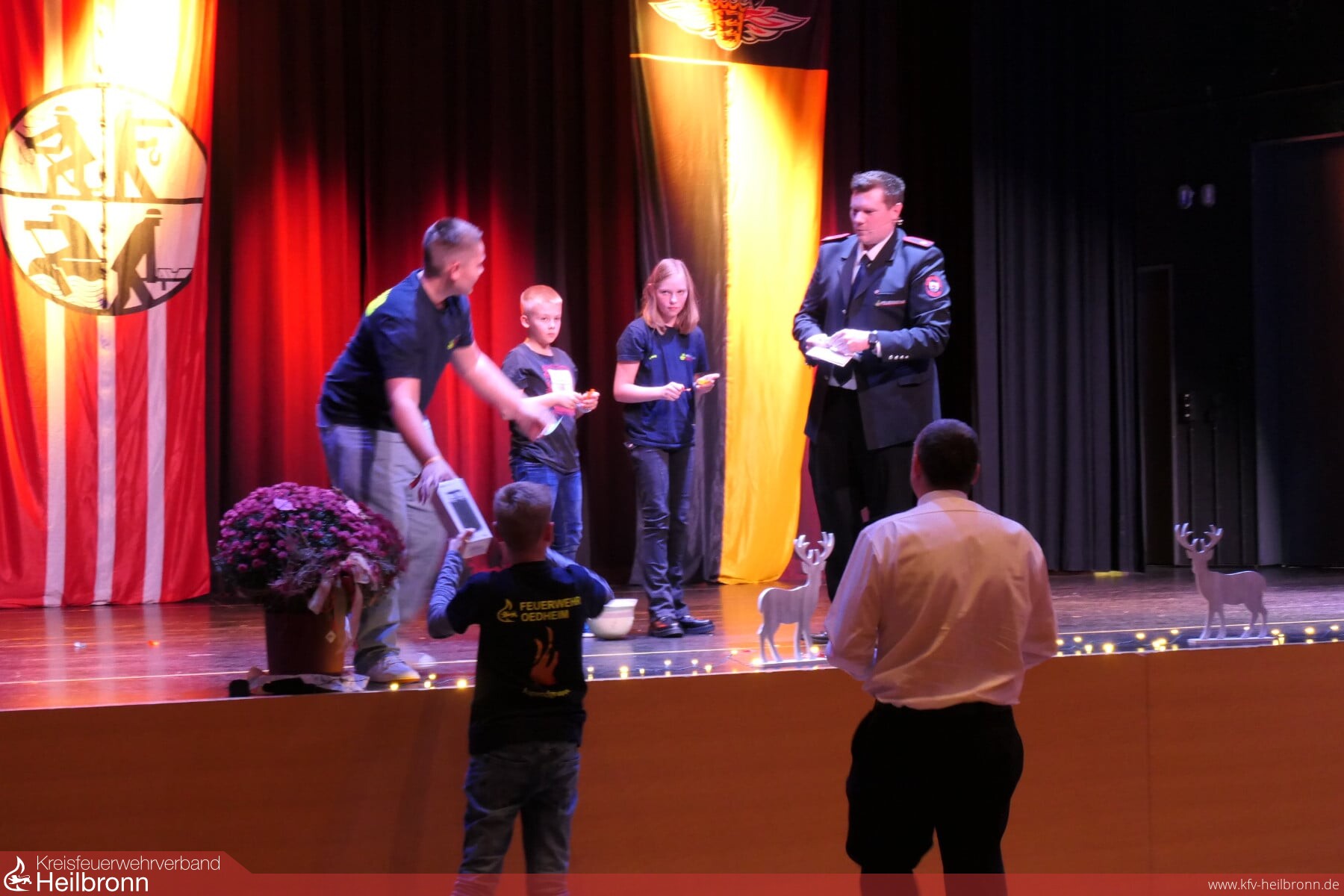 Oedheim Der diesjährige Kameradschaftsabend der Freiwilligen Feuerwehr Oedheim in der festlich geschmückten und voll besetzten Kochana stand wiederum im Zeichen der Auszeichnung von verdienten Feuerwehrleuten für deren Engagement über viele Jahre im ehrenamtlichen Einsatz für die Feuerwehr. Neben dem Dank für die vielen Stunden im Einsatz und Übungsdienst für die FeuerwehrkameradInnen und deren Partner und Familien sorgen das tolle Büfett und ein heiteres Programm dafür, dass der Abend für alle sehr kurzweilig, spannend und auch sehr unterhaltsam verlief.