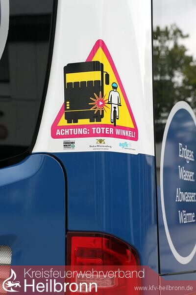 Mit einer neuen Aktion will die Stadt Heilbronn vor allem Zweiradfahrer sensibilisieren, sich der lauernden Gefahr bewusst zu werden: Auffällige Aufkleber der Landes-Arbeitsgemeinschaft fahrradfreundlicher Kommunen und der Landesverkehrswacht werden nun städtische Großfahrzeuge von Feuerwehr, Verkehrsbetrieben und Betriebsamt am Heck in Kopfhöhe von Radlern zieren. „Achtung, toter Winkel“, steht dort unter der Silhouette eines Lkw. Eine erste Reaktion hat der städtische Radverkehrsbeauftragte, Stefan Muth, per E-Mail schon erhalten. „Tolle Aktion“, schrieb ein Radfahrer ans Amt.