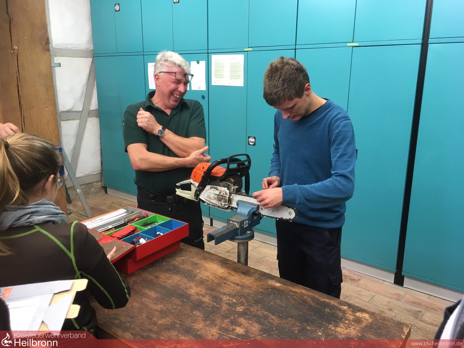 Die Grundlagen für die richtige Handhabung, Wartung und Pflege der Motorsäge konnten in einer Übungseinheit in der Werkstatt unter dem Motto „learning by doing„ übermittelt werden.