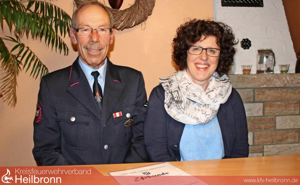 Bild: Der langjährige Langenbeutinger Feuerwehrkommandant Gerhard Kubach mit Ehefrau Birgit.Foto: Agentur Kochertal