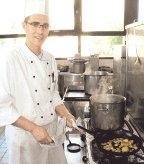 Bild: Samt Herd erst unten, jetzt wieder oben: Küchenchef Enrico Schröder. (Foto: Friese)