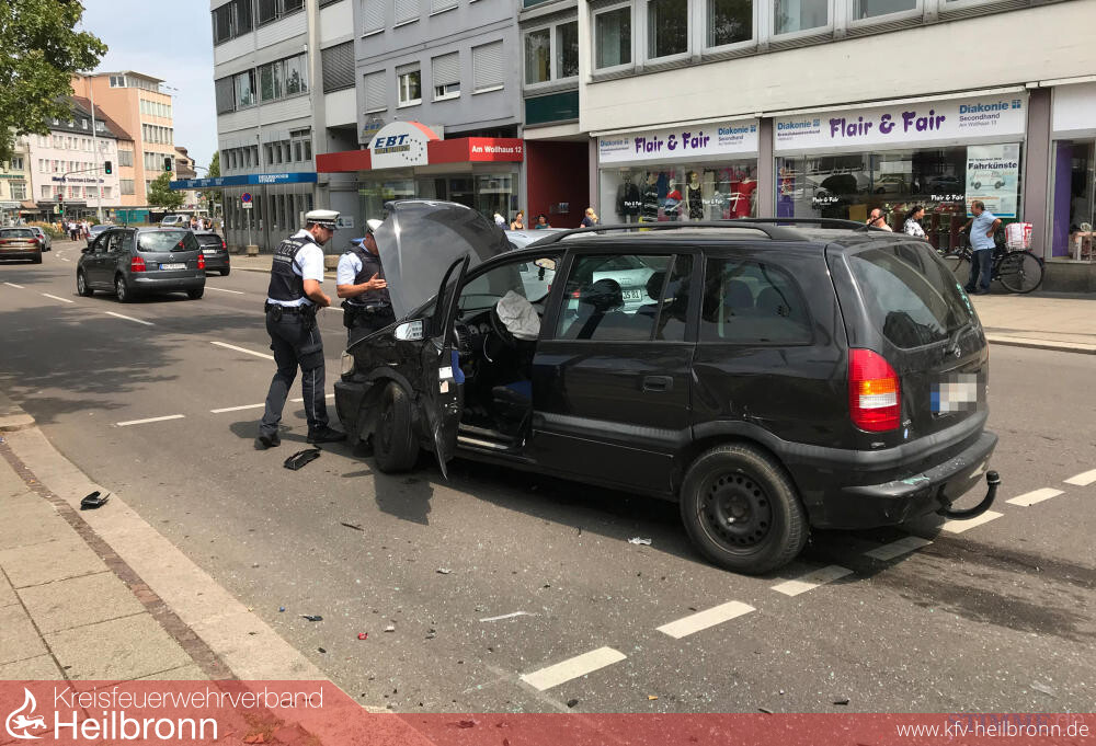 Wie es zu dem Unfall in Heilbronn an der Kreuzung Wollhausstraße und Allee kam war unklar. Der Fahrer eines der beiden Unfallautos, ein dunkler Mini-Van, flüchtete nach Informationen von Stimme.de, die Beifahrer waren geblieben. Bei dem anderen beteiligten Fahrzeug handelte es sich um einen Audi der Heilbronner Feuerwehr.
