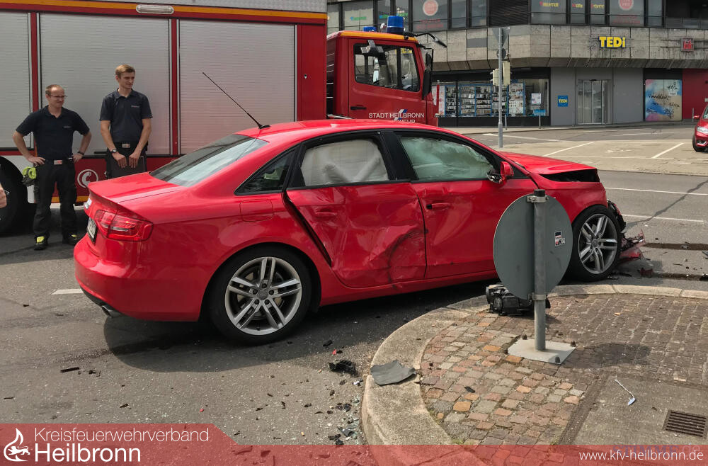 Die Feuerwehr Heilbronn befand sich am Mittag des 1 August auf dem Weg zu einem Lkw-Unfall in Bad Friedrichshall. Bei der Fahrt dorthin krachte es auf der Heilbronner Allee.