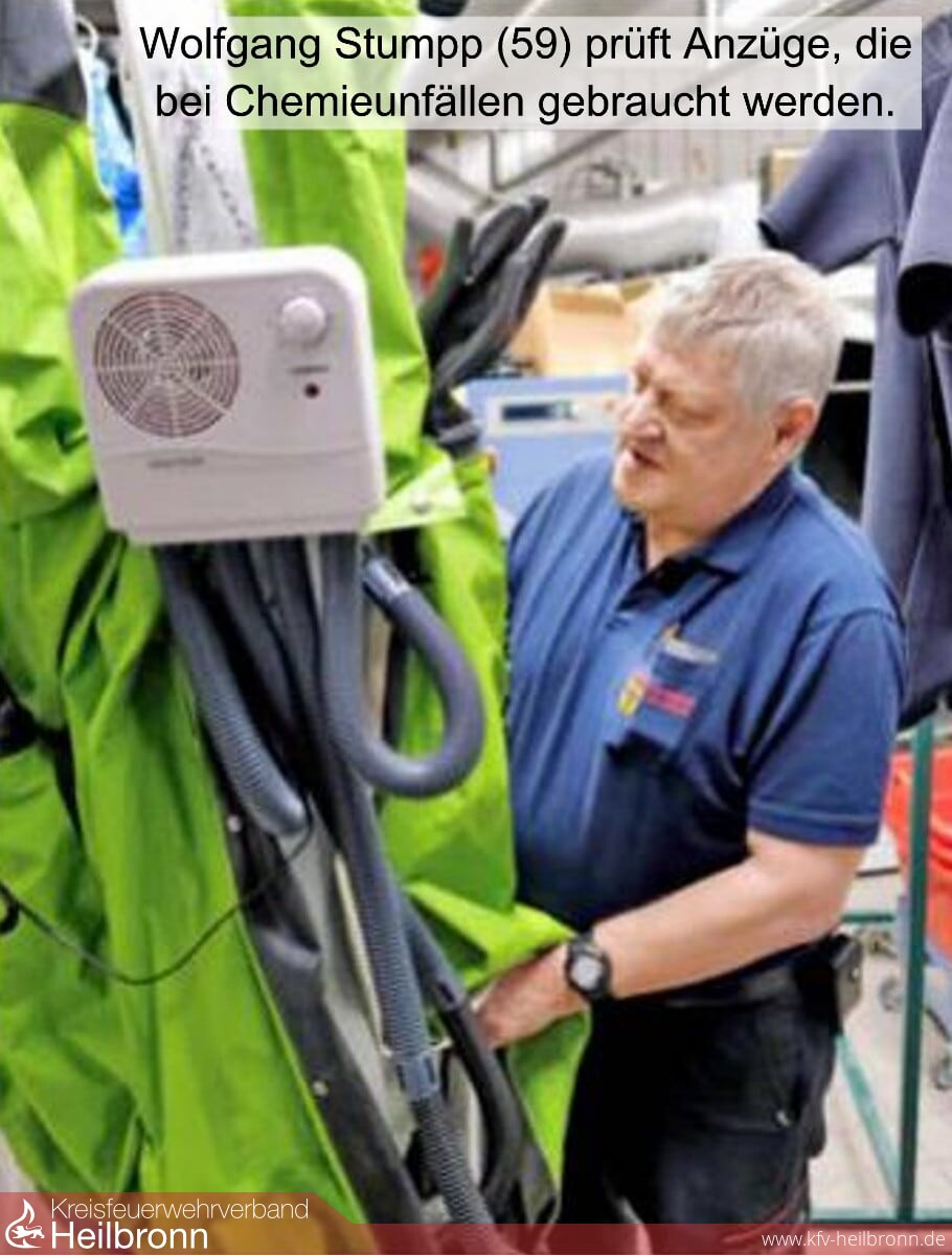 Die verschmutzten Klamotten kommen in eine 1,60 Meter hohe Waschmaschine. 25 Kilogramm fasst das XXL-Monstrum. Wolfgang Stumpp, Hauptbrandmeister aus Heilbronn, hat dieses Mal Waschdienst. „Jeder Feuerwehrmann ist auch mal für die Wäsche zuständig“, sagt Vogt. Stumpp schiebt die dunkelblauen Uniformen mit den Signalstreifen durch die geöffnete Luke der Maschine. Klappe zu. „An manchen Tagen können es schon mal 100 Uniformen sein, die zu waschen sind“, sagt der 59-Jährige. Nach eineinhalb Stunden ist das Programm durchgelaufen. Nach dem Trocknen wird jede Uniform an den Spind des Feuerwehrmannes gehängt.