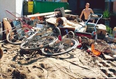 „Ich habe seit Freitagabend zwei Stunden geschlafen“, sagt Walter Denz, 59. Auf seiner Stirn klebt angetrockneter Matsch. „So schlimm war es noch nie.“ Denz führt durch sein Haus wie durch ein Museum, nur macht er das schweren Herzens. Alles ist zerstört, Dreck klebt an den Wänden, der Hobbyraum ist keiner mehr. Vor der Garage steht Tochter Tanja und spritzt mit dem Hochdruckeiniger das ab, was noch zu retten ist. Sie hat sich freigenommen. Im Ort spreche man schon von der „Straße des Grauens“, sagt sie.