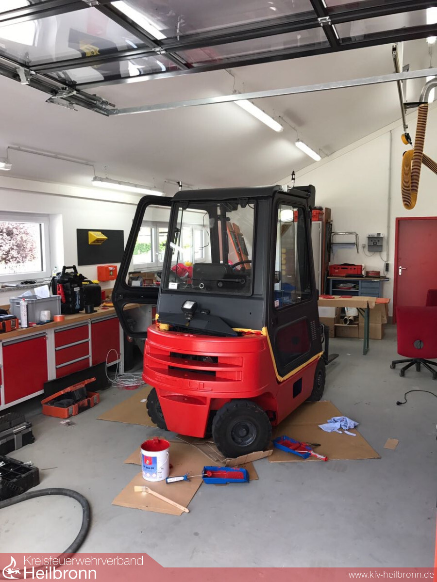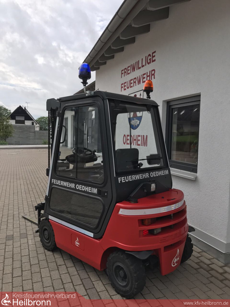 Die Feuerwehr Oedheim konnte in den letzten Tagen ihr neues Familienmitglied offiziell in den Dienst stellen. Zuvor wurde der aus dem Jahr 1999 stammende Gabelstapler in Eigenleistung umlackiert, beklebt und ertüchtigt. Im Zuge des Gerätehausum- und anbaus, sowie der Fahrzeugkonzeption schließt der Gabelstapler eine wichtige Lücke in der taktischen Planung. So liegt sein Haupteinsatzgebiet beim Arbeiten am Schwerlastregal und der geplanten Gerätewagen-Transport Anschaffung. Mit einer vorhandenen Straßenzulassung kann der Gabelstapler bei Großeinsätzen, wie dem Unwetter und dem damit verbundenen Hochwasser im Mai 2016 auch mobil im Einsatz genutzt werden. Der dieselbetriebene Stapler mit einem Gesamtgewicht von 2,7t verfügt über eine max. Hubhöhe von 3,5m und eine max. Hubkraft von 1,6t.