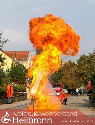 Dabei wird simuliert, was passiert, wenn versucht wird, brennendes Fett (z.B. eine Friteuse) mit Wasser zu löschen.Die ca. 10 Meter hohe Stichflamme, bei der es sich um brennende Fett-Tröpfchen handelte, zeigte eindrucksvoll, wie gefährlich derartige Löschversuche sind.