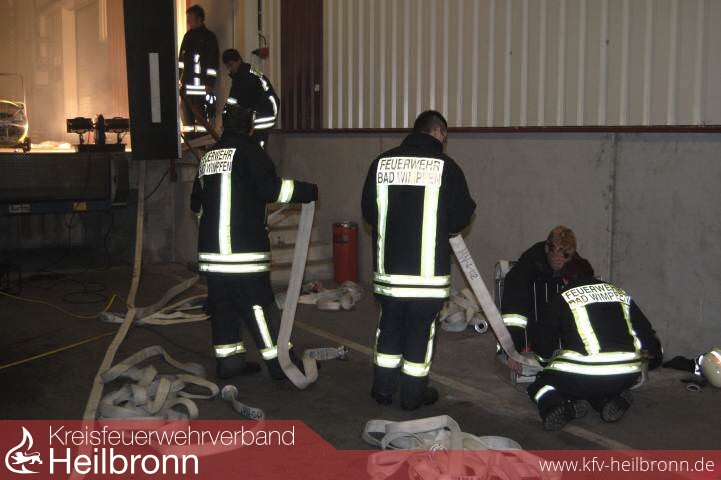 Um den angenommen Brand umfassend zu bekämpfen waren insgesamt waren 5 C Rohre, 3 B Rohre, 2 Wenderohre über die Drehleitern aus Bad Wimpfen und Bad Rappenau, sowie ein Wasserwerfer im Einsatz.