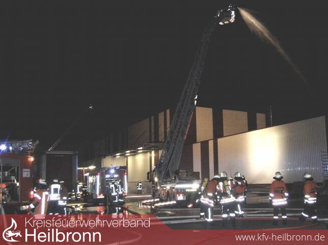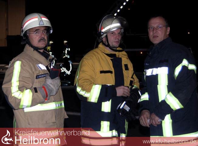 Schnell erkannte der zuerst anrückende Einsatzleiter Mathias Elsasser, dass bei einem Brand dieses Ausmaßes die eigenen Kräfte nicht ausreichen. Deshalb wurde sofort ein Löschzug aus Bad Rappenau, der Schlauchwagen SW 2000 und der Einsatzleitwagen aus Neckarsulm, sowie ein Fahrzeug der Werkfeuerwehr Solvay nachalarmiert.