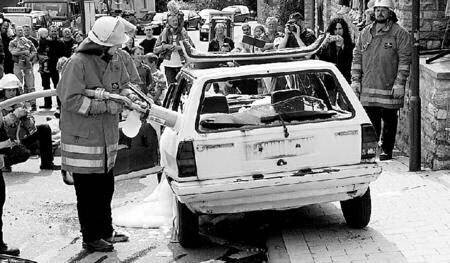 Die Freiwilligen für die Schauübung der aktiven Wehr wurden erst am Abend zuvor zusammen gesucht. Thomas Engler: „Deren Ausbildungsstand erfordert keine Vorübungen mehr.“ Das zeigte sich, als die Wehrleute an dem simulierten Unfall am Festgelände bei der alten Linde ihre Utensilien auspackten und den Zuschauern verdeutlichten, was die ehrenamtlichen Retter und Helfer alles können und wissen müssen. Wie bei der Jugend bestand auch diese Gruppe aus Floriansjüngern aller drei Hardthausener Abteilungen. Thomas Engler beschrieb den Zuschauern, was die Retter soeben machten. Ein Schwerverletzter war nach einem Unfall in seinem PKW eingeklemmt. Dessen Beine klemmten in den Pedalen. So kam auch die neue Pedalschere zum Einsatz.