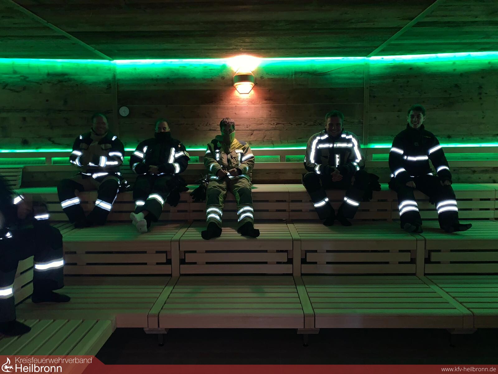 Um den aktuellen Richtlinien und Empfehlungen der Deutschen Gesetzlichen Unfallkasse zu entsprechen, wurde ein Testwochenende veranstaltet. Die Elemente Wasser und Wärme waren bei diesem Trageversuch ein wichtiges Testkriterium. Bedingt durch das Coronavirus konnte im leeren Saunabereich des geschlossenen AQUAtoll die Einwirkung von Wärme auf die Einsatzkleidung ausgiebig getestet werden. Hierzu waren die Probanden mit angelegter Einsatzkleidung 10 Minuten bei Temperaturen von 80 Grad Celsius ausgesetzt. Mit Wasserduschen wurde die Kleidung auf Dichtigkeit geprüft. Der mechanische Verschleiß und der Tragekomfort der Kleidung musste auf einem Hindernisparcours im Feuerwehrhaus Neckarsulm auf die Probe gestellt werden.