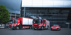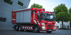 Die Audi Werkfeuerwehr am Standort Neckarsulm hat im Juni ihr zweites Wechselladerfahrzeug vom Aufbauhersteller HENSEL Fahrzeugbau abgeholt. Das Fahrzeug basiert auf einem SCANIA P 420 B6x2 mit satten 420 PS und einem zulässigen Gesamtgewicht von 26 Tonnen. Das WLF ist mit einem Wechselladersystem Typ Meiller RS21 Tectrum ausgerüstet. Drei Kameras bieten dem Maschinisten eine optimale Sicht zum Auf- und Absatteln der Abrollbehälter. Die Fahrzeugfolierung und -beschriftung orientiert sich am aktuellen Designkonzept der Werkfeuerwehr.