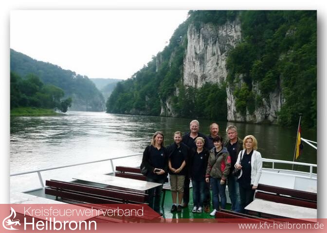 Da die Feuerwehr noch einen Wunsch hatte, wurde die komplette Fahne zur Abänderung in der Stickerei belassen und die Abholdelegation startete ins nahegelegene Kelheim, wo eine Schifffahrt zum Kloster Weltenburg auf dem Programm stand.