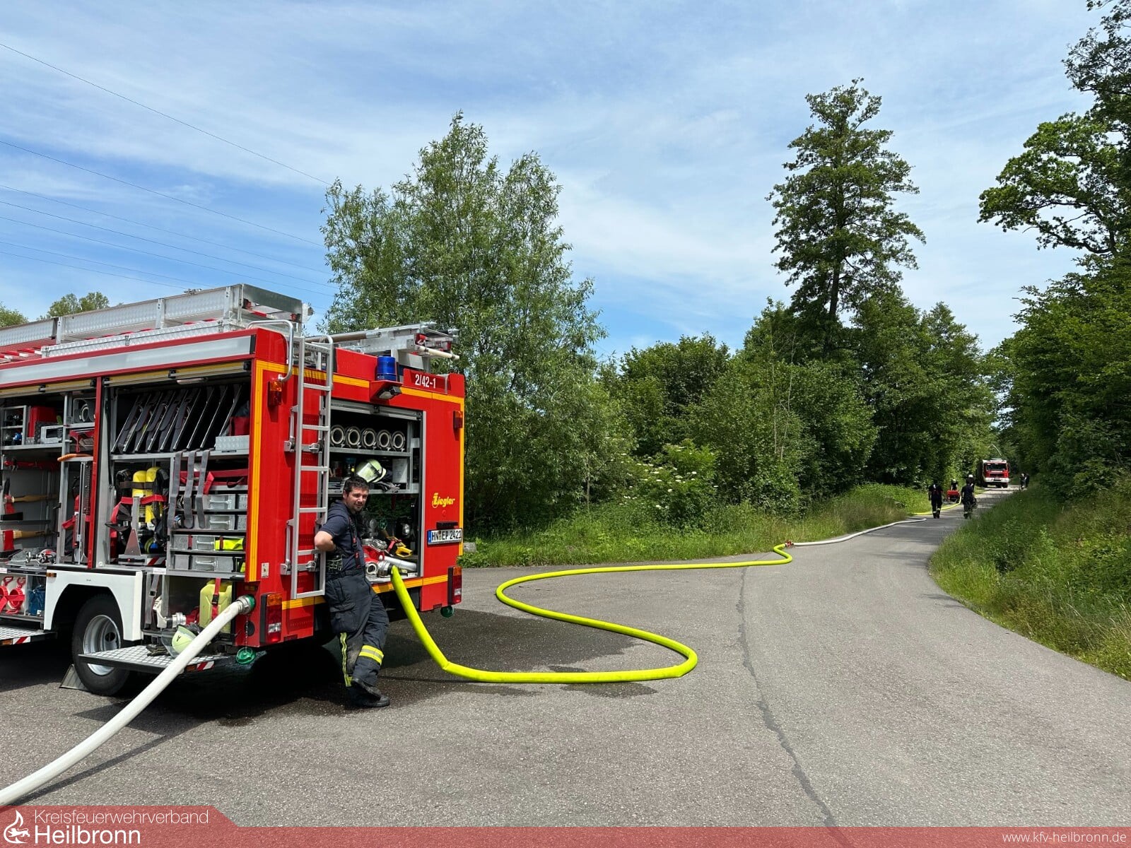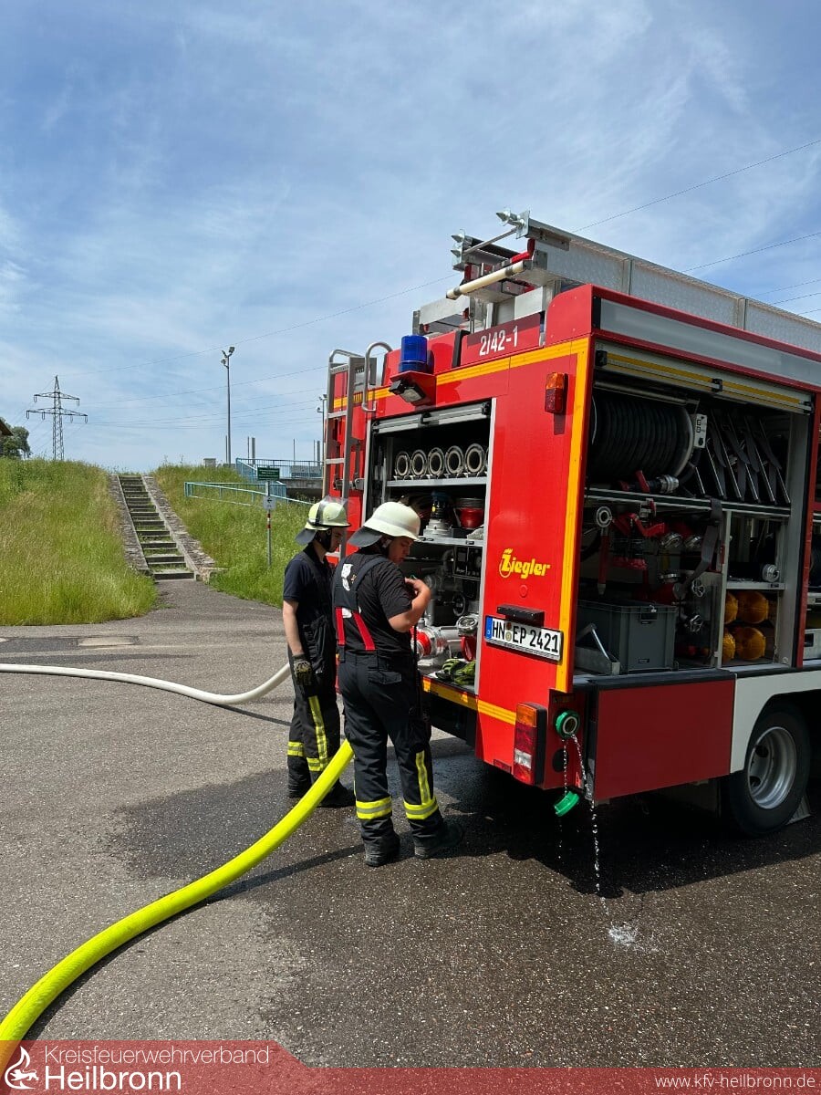 Für die Wasserentnahme aus offenem Gewässer sowie der Wasserförderung über lange Wegstrecken ging es an zwei intensiven Tagen an verschiedene Übungsorte. Sowohl stehende als auch fließende Gewässer wurden angefahren, um die Saug- und druckseitige Wasserförderung sehr nah am Einsatzszenario zu üben.