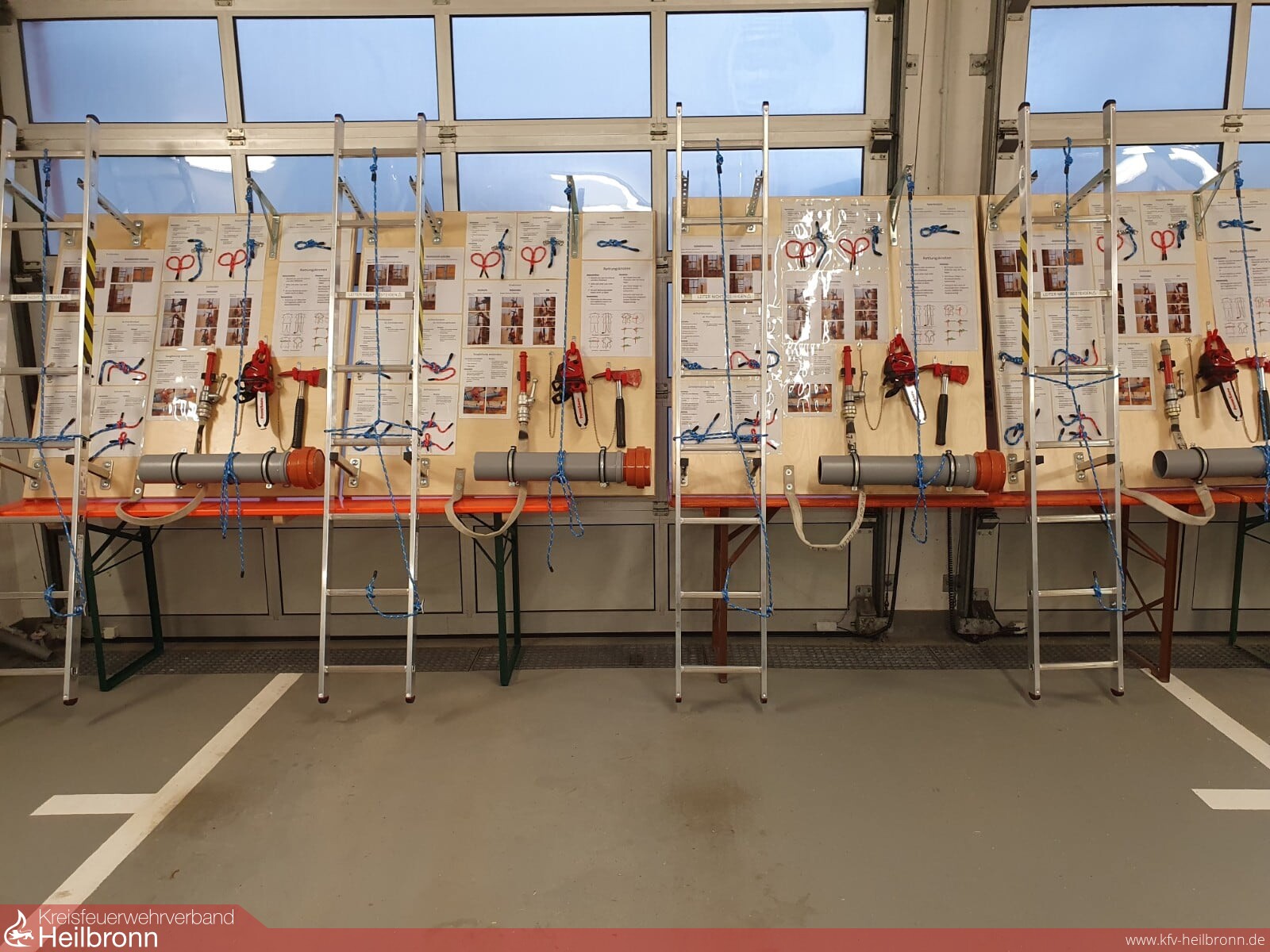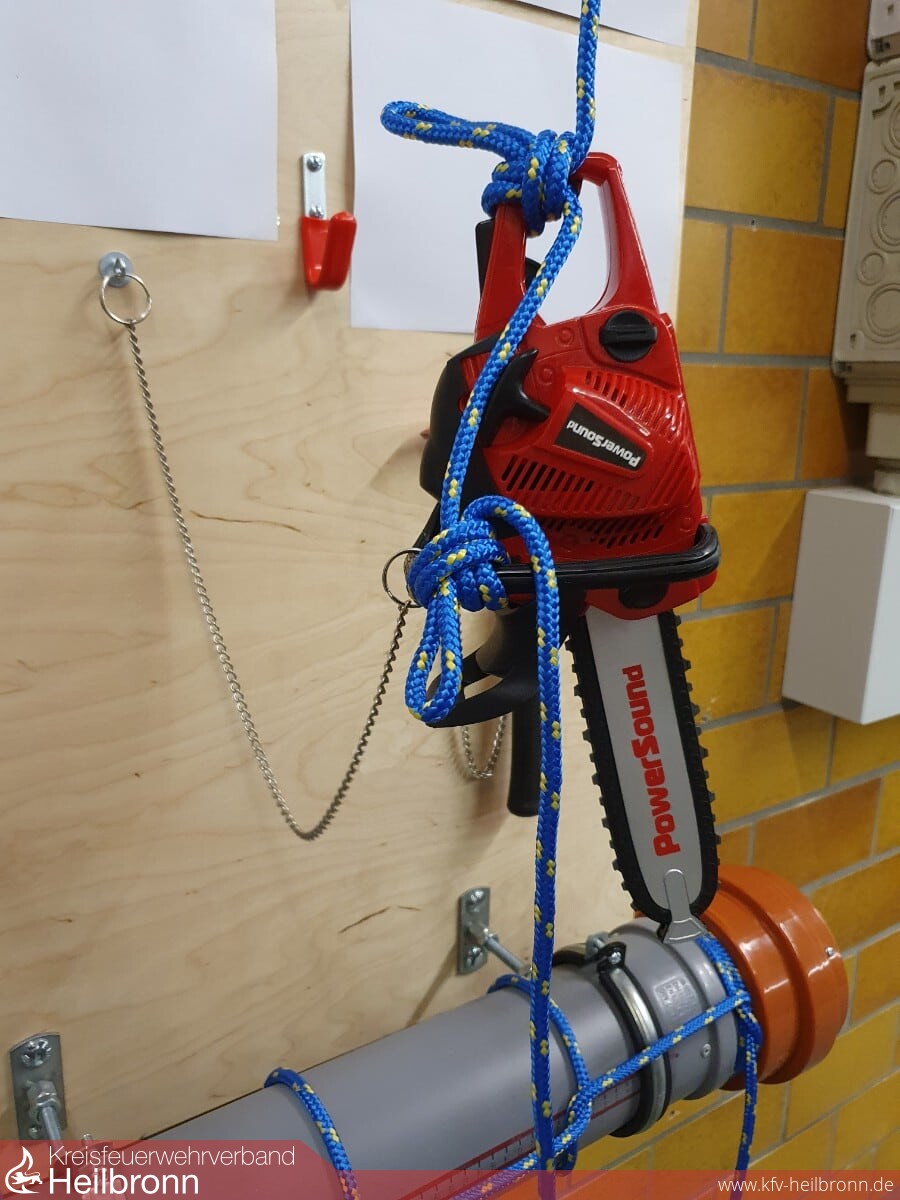 Knoten und Stiche – ein Thema das beim Training und den Einsätzen eine wichtige Rolle spielt, aber tatsächlich nicht das beliebteste Übungsthema ist. Um hier etwas mehr Schwung reinzubringen und vor allem die wichtige Praxisnähe zu bespielen kommt bei der Feuerwehr Bad Rappenau zukünftig eine Knotenübungswand zum Einsatz. Die Idee und den ersten Prototyp entwickelte Julian Kober aus der Abteilung Bad Rappenau. Nachdem dieser dann in der Abteilung in ersten Übungsdiensten für sehr gut befunden wurde, entschied der Ausschuss, die Knotenübungswand in allen Abteilungen der Feuerwehr Bad Rappenau zum Einsatz zu bringen, in denen die Platzverhältnisse ausreichend sind. Anschließend trafen sich an einem Samstag Monique Lilli, Michael Laumann, Patrick Wager, Julian Last und Max Elser aus den Abteilungen Süd, Wollenberg, Grombach und Heinsheim um unter der Anleitung von Julian Kober die Wände für ihre Abteilungen zu fertigen. An diesen können nun in den Abteilungen alle gängigen Feuerwehrknoten beübt werden – eine der Übungen, die u.a. während der Coronazeit etwas zu kurz kamen. Das Legen und Stechen von Knoten ist schlichtweg digital nicht möglich. In einem weiteren Schritt werden die einzelnen Knoten in Videos dargestellt. Diese Videos sind dann per QR-Code an den Wänden abrufbar und können so jederzeit in Erinnerung gerufen werden. Vielen Dank an Julian Kober für die tolle Idee und die Umsetzung – der Kameradin und den Kameraden vielen Dank für das Opfern eines ganzen Samstages um dieses Projekt zu realisieren.