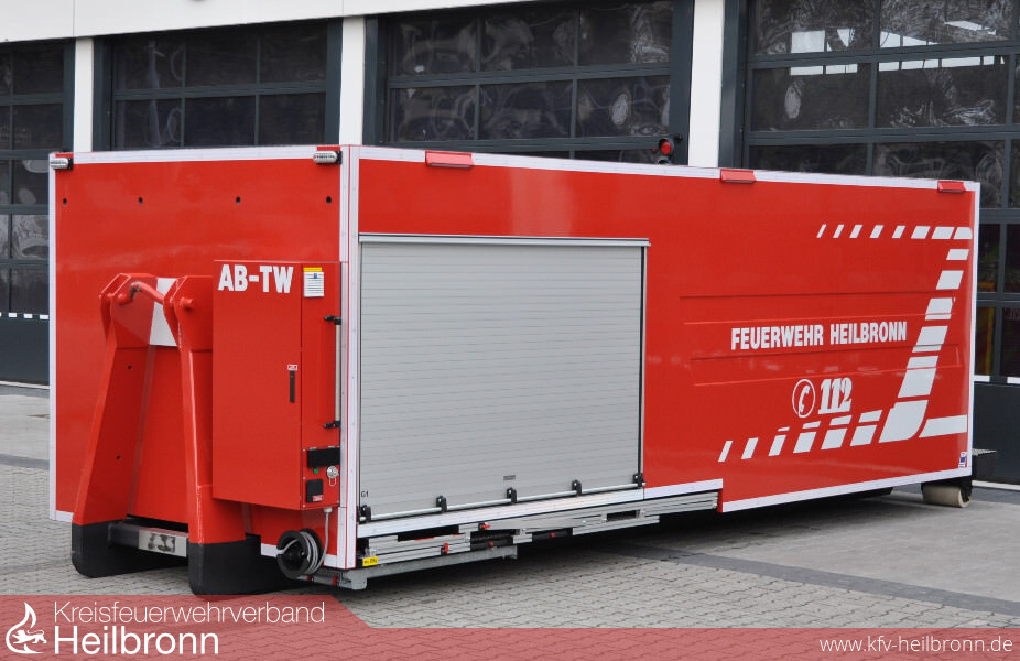 Der seither aus einem umgebauten Lebensmitteltank bestehende Abrollbehälter-Tank/Wasser wurde Ersatz beschafft.Bei dem neuen Abrollbehälter handelt es sich um eine Stahl-GFK-Kombination mit einem 10.000 Liter fassenden glasfaserverstärkten Kunststofftank. Die Wasserförderung erfolgt über eine integrierte Tragkraftspritze. Das maximale Gesamtgewicht inklusive einfacher feuerwehrtechnischer Beladung sowie unabhängiger Verkehrswarnanlage beträgt 15.000 kg. Seitlich angebrachte Auszugstritte mit Klappgeländer ermöglichen auch in aufgesatteltem Zustand ein sicheres Arbeiten.
