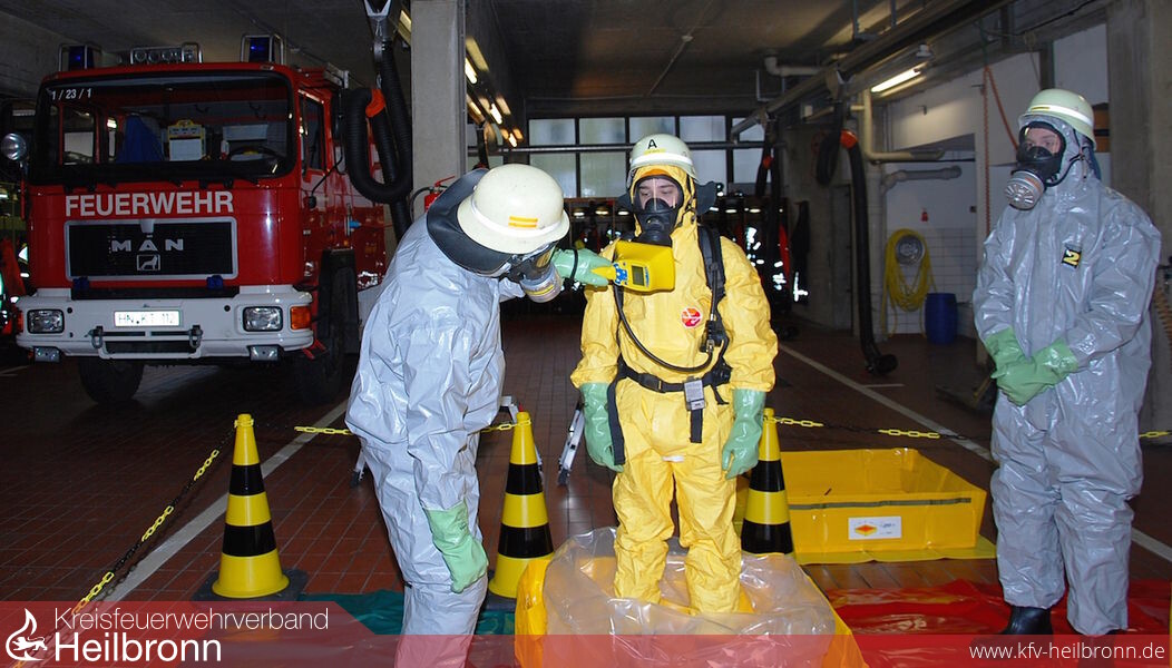 Im vergangenen Jahr wurde nun das Fahrzeug durch das Land Baden Württemberg um weiteres Material erweitert. So steht jetzt für einen B-Einsatz eine Grundausstattung für die Desinfektion zur Verfügung. Zusätzlich gab es weitere Ausstattung für den Dekonplatz A, auch Kontaminationsnachweisplatz genannt. Im Rahmen der Gefahrstoffausbildung der Feuerwehr Weinsberg wurde nun im Januar die Mannschaft am Aufbau und Betrieb des Nachweisplatzes geschult. Bis zur Lieferung der beiden Kontaminationsnachweisgeräte durch den Bund, stellt der CBRN-Erkunder des Katastrophenschutzes, welcher auf der Abteilung Gellmersbach stationiert ist, die Messgeräte bei Übungen und im Einsatzfall zur Verfügung.