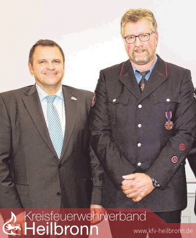 Der stellvertretende Kreisbrandmeister Uwe Thoma heftete dem Eppinger das Deutsche Feuerwehrehrenkreuz in Bronze ans Revers. "Er hat einen wesentlichen Beitrag für die Sicherheit der Stadt geleistet", erklärte Thoma.