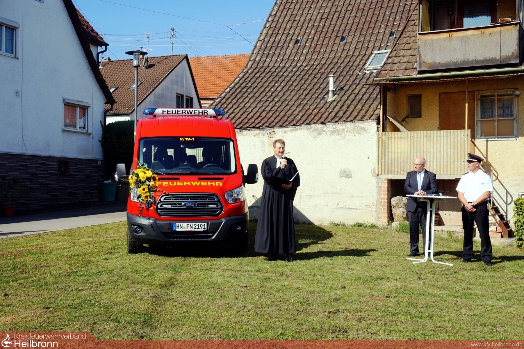 Bei strahlendem Sonnenschein konnte für die Feuerwehr ein neuer Mannschaftstransportwagen (MTW) in Dienst gestellt werden. Die Übergabe fand am Dorfplatz im Rahmen des Backhausfestes in Cleversulzbach statt.