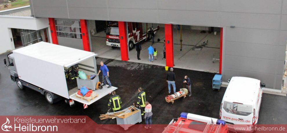 Während am neuen Standort das Einräumen läuft, steht vor dem Feuerwehrhaus in Eichelberg der Liefer-Lkw von Feuerwehrmitglied Jürgen Schweikert. Die Ladebordwand ist heruntergelassen und zehn Helfer räumen das alte Magazin in Gitterboxen und große Plastikkisten aus. „Wir haben auch schon vorgearbeitet“, berichtet Steffen Badtmann. Gemeinsam hieven Kathrin Hedtke und Andreas Niedt einen Sack Ölbinder in eine Gitterbox, die mit einem Gabelstapler verladen wird. „Wir müssen mindestens noch dreimal fahren“, meint Bernd Frisch, ehemals Abteilungskommandant in Eichelberg, einer der Stellvertreter von Reiner Schüro. Ihm gefalle besonders die Geräumigkeit des Feuerwehrhauses.
