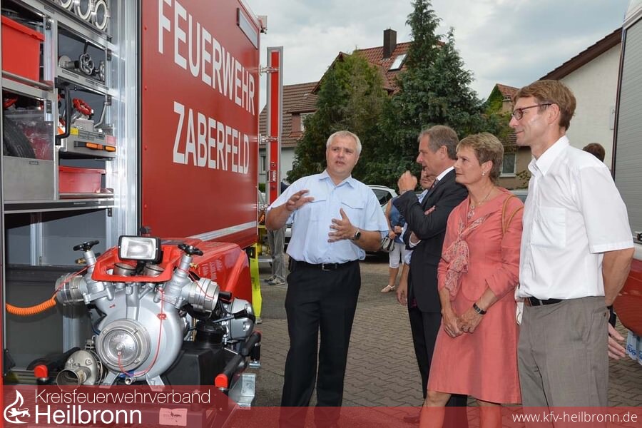 „Ein innovatives Fahrzeug, das den örtlichen Anforderungen optimal angepasst wurde“, bescheinigte der stellvertretende Kreisbrandmeister Heiner Schiefer den Zaberfeldern. Er ist überzeugt, „dass die Ausgeben sehr gut angelegt sind“. So sieht die Landtagsabgeordnete Friedlinde Gurr-Hirsch auch den Landeszuschuss. „Man kann euch etwas geben, das dann 40 Jahre hält“, sagte sie mit Blick auf das inzwischen ausgemusterte, defekte Löschgruppenfahrzeug LF 8.