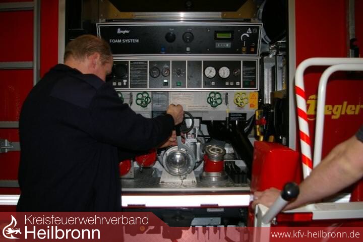 Nach der Mittagspause folgte dann noch die Einweisung für die Pumpe und das Schaummittelzumischsystem auf dem Pumpenprüfstand.