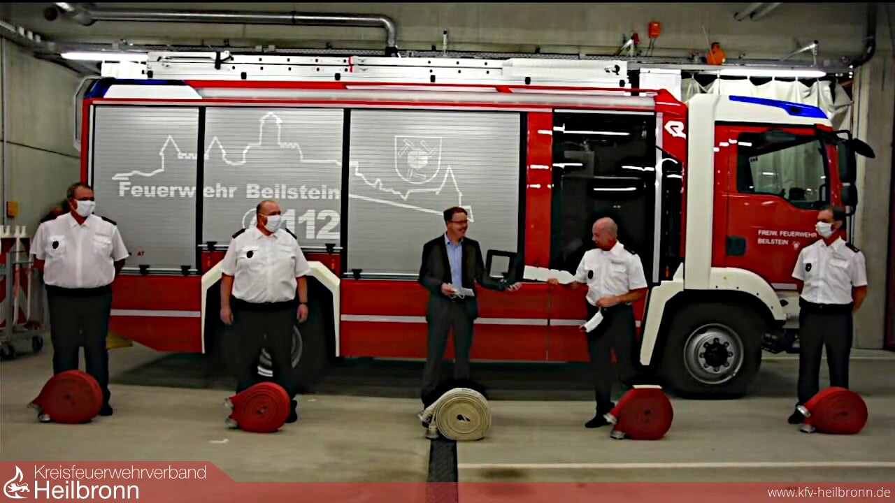 Die Kameraden konnten die Reden, einen Film und die Übergabezeremonie, mit den wichtigsten Vertretern der Feuerwehr und dem Bürgermeister, vor den heimischen Bildschirmen verfolgen. Nach der Schlüsselübergabe wurde noch virtuell mit allen Kameraden angestoßen, diese hatten im Vorfeld ein spezielles Schlauchpaket mit einem kleinen Sekt erhalten. Durch das neue HLF kann der Brandschutz und die technische Hilfeleistung für die Beilsteiner Bürger deutlich verbessert werden, darüber hinaus soll das Fahrzeug immer alle Kameraden gesund und wohlbehalten aus den Einsätzen zurückbringen.