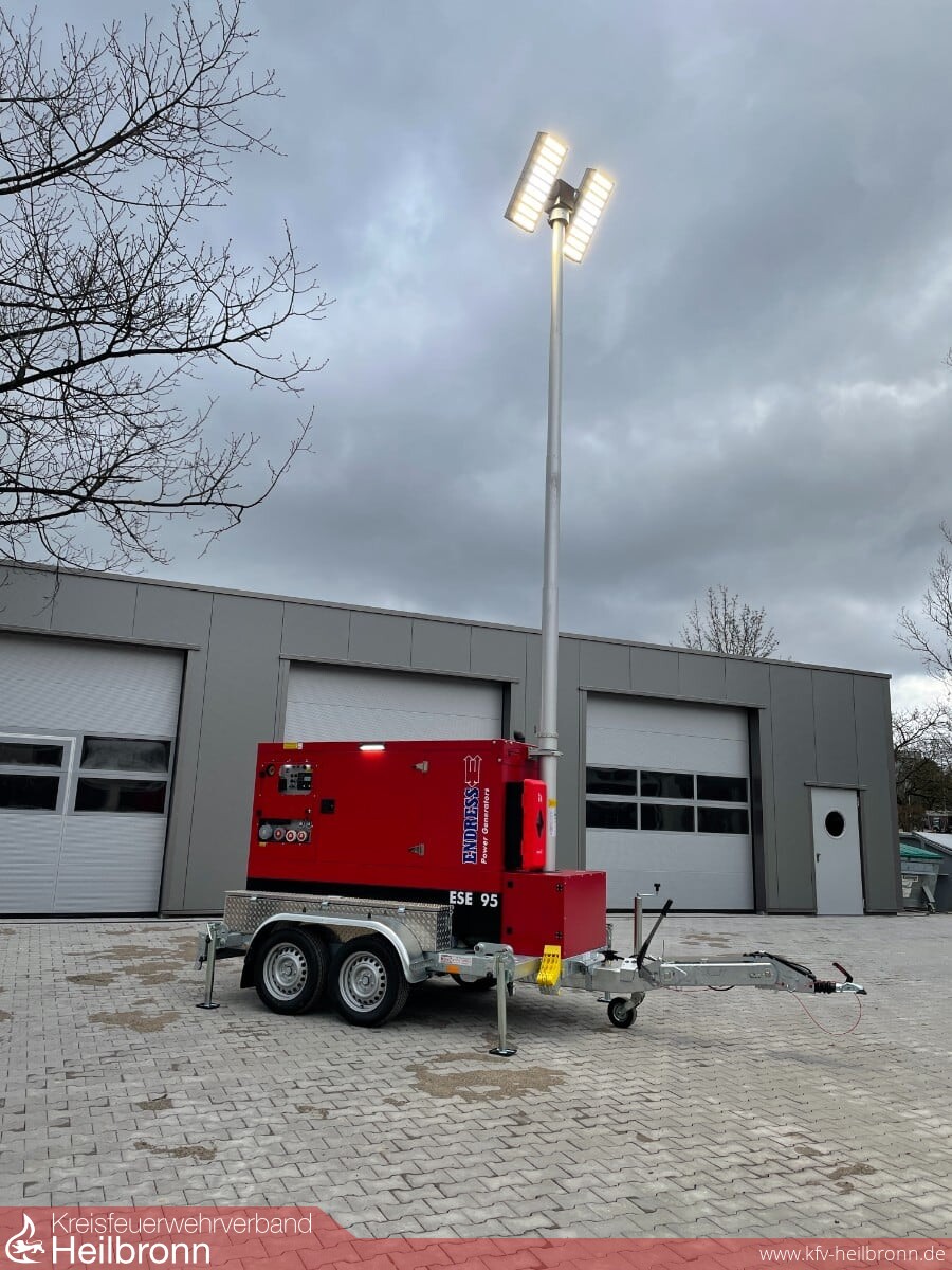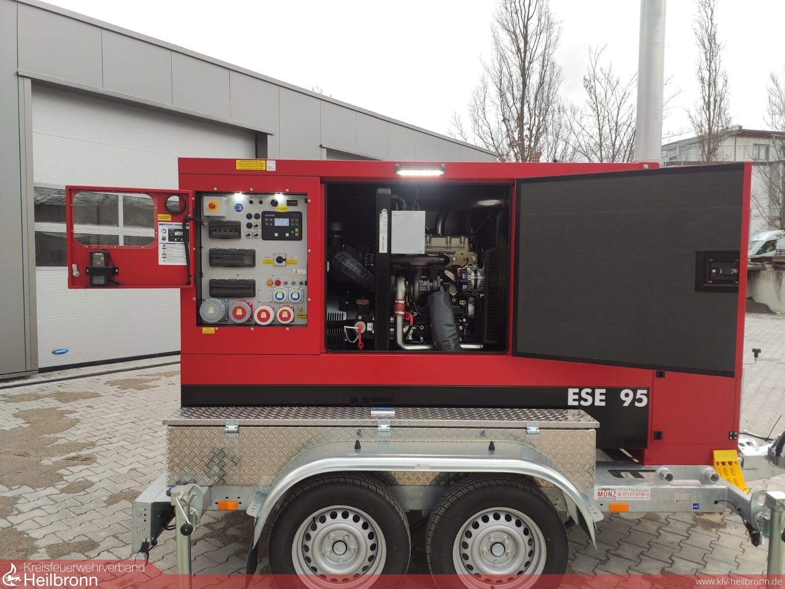 Es wurde zusammen mit einem neun Meter hohen, pneumatischen LED-Lichtmast auf einem Tandemanhängerfahrgestell aufgebaut und soll künftig bei Stromausfällen das Feuerwehrhaus und die Leitwarte der Trinkwasserversorgung im selben Gebäudekomplex versorgen. Das 2,7t schwere Aggregat besteht aus einem Industriedieselmotor, der einen Generator mit einer elektrischen Leistung von 86,5 kVA antreibt. Neben dem Innenlicht und der Heizungs- und Lüftungsanlage kann damit im Notbetrieb auch ein Herd sowie zwei Duschen im Feuerwehrhaus betrieben werden.