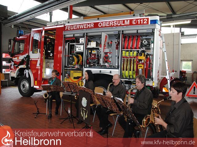 Zahlreiche Floriansjünger aus Nah und Fern, sind zur Übergabe des neuen Fahrzeuges gekommen. Das Saxofonquintett Cappuccino leitet mit der Sinfonie Nr. 3, von J.S. Bach, die kleine Feierstunde musikalisch ein.