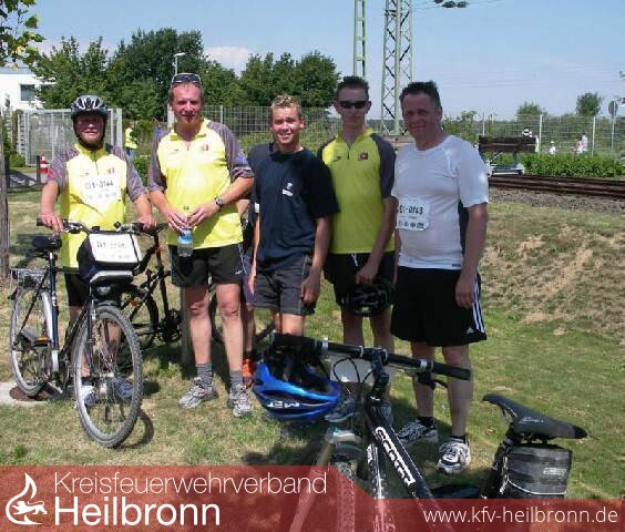 Bei rund 35 Grad mussten die Feuerwehrleute fünf Kilometer laufen und 20 Kilometer Radfahren. Die jüngeren Kameraden benötigen hierfür runde 70 Minuten, die etwas älteren Teilnehmner der Obersulmer Wehr zwischen 80 und 120 Minuten.