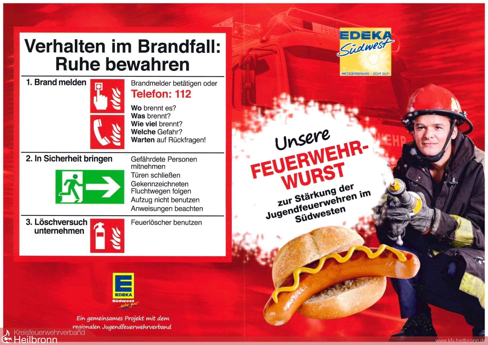 Die Feuerwehr Ellbachtal kombinierte diese Öffentlichkeitsarbeit mit der Aktion von Edeka Südwest. Diese unterstützt mit dem Verkauf von jeder Feuerwehrwurst und -steak die Jugendarbeit in Baden-Württemberg. Würste und Steaks gab es frisch gegrillt im Außenbereich. Die Feuerwehr bedankt sich für die Warenspenden bei der Leitung des Edeka Marktes Ueltzhöfer in Ellhofen.