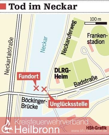 An derselben Stelle hatten die Rettungstaucher der Heilbronner Feuerwehr vor einem Jahr einen derartigen Unglücksfall geübt. „Das gehört zur Grundausbildung", sagt Kommandant Eberhard Jochim. Ihm und seinen Kollegen sitzt der dramatische Einsatz vom Sonntag immer noch in den Knochen. Es war finster im Wasser und das Auto war in der starken Strömung des Neckars abgetrieben worden. Kreisförmig durchkämmten Taucher von der Unglücksstelle aus den Fluss. 30 Meter weiter wurden sie fündig.