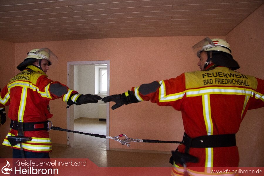 Bereits zum dritten Mal trafen sich engagierte Feuerwehrmänner und –frauen der Freiwilligen Feuerwehr Bad Friedrichshall, um das Angebot der Ausbilder anzunehmen samstags in einem der Abrisshäuser der Stadt Bad Friedrichshall zu üben. Mit verschiedenen Szenarien war dies auch die gute Gelegenheit, verschiedene Vorgehensmethoden durchzusprechen, auszuprobieren und Fragen zu klären.