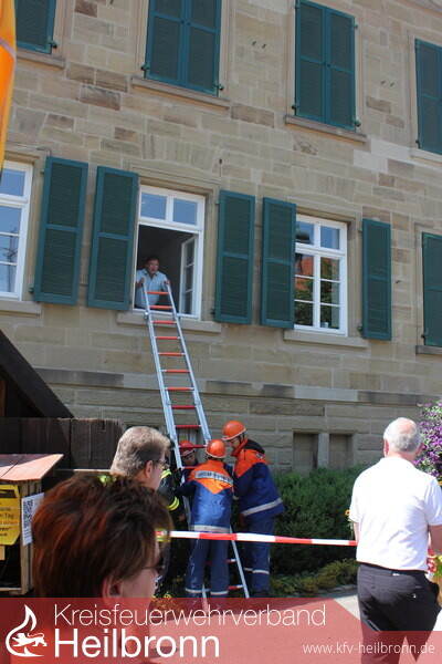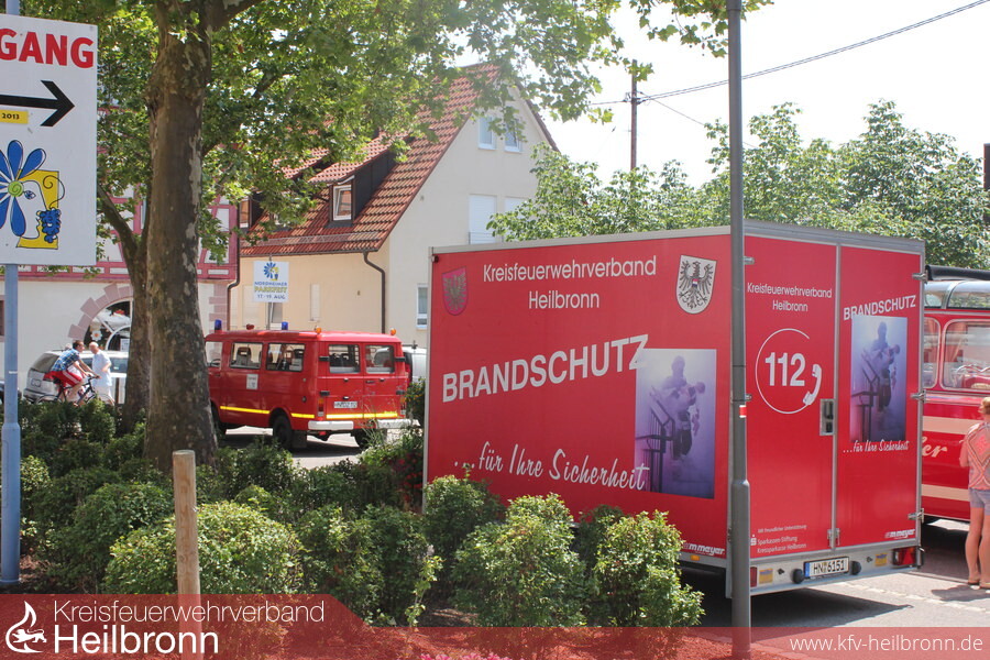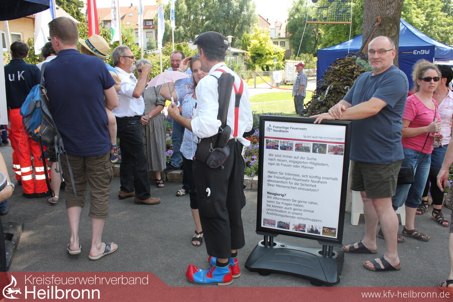 Piep - Piep - Piep. Auf Kommando von Entertainer Jo Brösele dringt Rauch aus einem Rathausfenster und man hört einen Rauchwarnmelder. Kurz darauf ruft Bürgermeister Volker Schiek um Hilfe. Mit dieser einen Infostand der Freiwilligen Feuerwehr Nordheim über Rauchwarnmelder begleitenden Live-Vorführung der Jugendfeuerwehr während eines sonnigen Blumensommer-Sonntags wird der Nutzen des kleinen Lebensretters vor zahlreichen Besuchern demonstriert. Nach eintreffen mit dem alten LF 8 beschließt die Jugend dem Bürgermeister über eine Steckleiter unter Atemschutz eine Fluchthaube zu bringen um ihn dann gefahrlos über das Treppenhaus aus dem Rathaus zu begleiten. Mit einem Kleinlöschgerät wird schließlich der vermeintliche durch eine Nebelmaschine dargestellte Brand gelöscht.