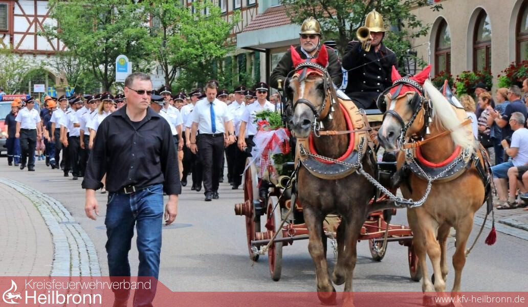 Zapfenstreich Über 50 Gruppen aus befreundeten Wehren sowie den Oedheimer Vereinen, Institutionen und Einrichtungen zogen mit liebevoll dekorierten Wagen, musizierend, Rad schlagend, schauspielernd und winkend durch die Hauptstraße. Angeführt wurden sie von den Gastgebern der Oedheimer Feuerwehr, die sich mit historischem Hydrophor und Handziehwagen, aber auch mit modernsten Fahrzeugen präsentierten.