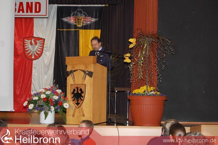 Den hohen Stellenwert der Jugendfeuerwehren betonte auch Bad Wimpfens Bürgermeister Claus Brechter in seinem Grußwort: „Wir wissen, welche Rolle die Feuerwehr spielt, umso wichtiger sind deshalb auch die Jugendfeuerwehren". Besonders im Hinblick auf die Folgen des „demographischen Wandels", also des „älter-Werdens" der Bevölkerung, seien die Jugendfeuerwehren äußerst wichtig.Unisono äußerte sich auch Heiner Schiefer, der in seiner Funktion als stellvertretender Kreisbrandmeister sprach. „Ich bin erfreut über die Anzahl der Jugendlichen, die später in die aktiven Abteilungen wechseln - denn ohne die Jugendfeuerwehren hätten wir schon heute massive Personalprobleme. Ich hoffe daher, dass in jeder Gemeinde die Bürgermeister erkennen, wie wichtig eine Jugendfeuerwehr ist", so Schiefer.