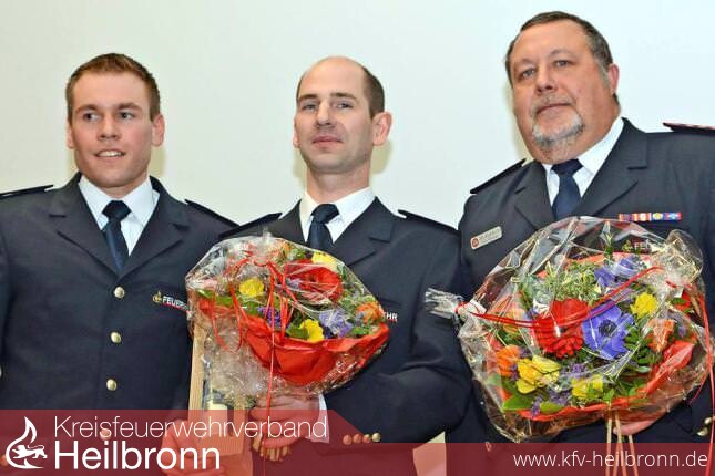 Spektrum „Seit Jahren sind die Einsatzzahlen hoch. Es sieht nicht danach aus, dass sie sinken werden, im Gegenteil“, mutmaßte Felix Mann An den Einsätzen ist abzulesen, mit welchem Spektrum an Gefahren die Feuerwehr konfrontiert wird. Sie ist darauf gut vorbereitet, wie ein Beispiel von Thomas Wachno zeigte. „Bei der Bergung und Rettung der bei Waldarbeiten unter einem Traktor eingeklemmten Person wurde perfekt gearbeitet, das war einfach professionell“, bescheinigte der Stellvertreter. Die Führungsriege hat die Ämter zuletzt kommissarisch ausgeübt, jetzt sind Thomas Wachno der erste Stellvertreter und Axel Klumbach der zweite ordentliche Vize des Kommandanten der Gesamtfeuerwehr, Felix Mann. In der Jahreshauptversammlung in der Grombacher Schlossberghalle wählten die anwesenden 160 Feuerwehrmitglieder in geheimer Wahl die beiden Führungsleute, die damit das Bad Rappenauer Kommandotrio komplett machen. In Doppelfunktion als Innenminister und als Vorsitzender des Kreisfeuerwehrverbandes Heilbronn nahm Reinhold Gall (SPD) zu Beginn an der Hauptversammlung teil. Er hatte zwei Ehrennadeln des Verbands im Gepäck, die er dem Fürfelder Abteilungskommandant Harald Reinhardt und seinem Grombacher Kollegen Lothar Fleck an die Uniform heftete. Beide engagieren sich seit über 15 Jahren als Abteilungskommandanten und sind schon seit 45 und 38 Jahren bei der Feuerwehr. Bekannt gegeben wurde noch, dass Tobias Mayer und Ralf Kuttruff als Stellvertreter von Harald Reinhardt bestimmt wurden.