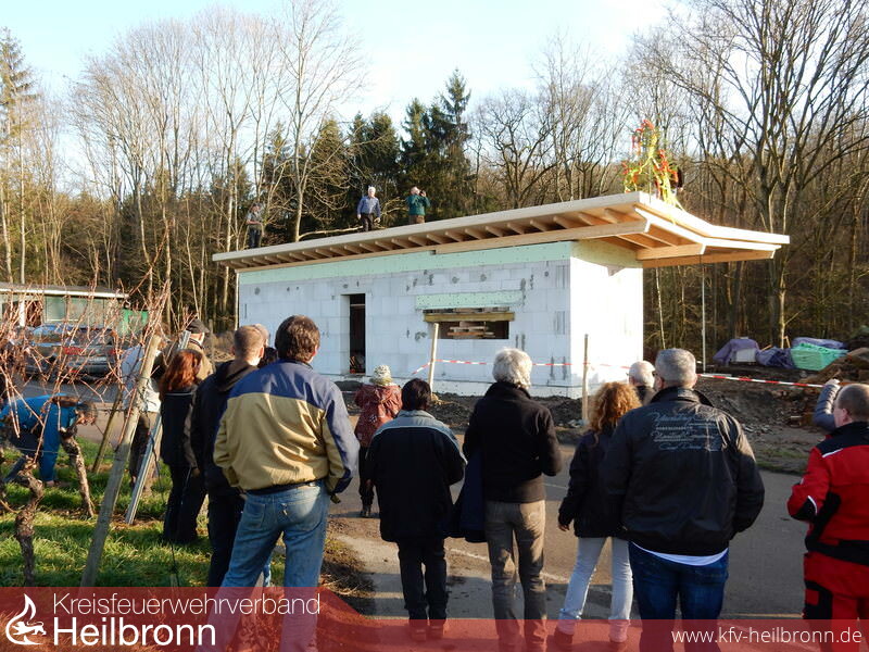 Schneller als erwartet konnte am 19.12.2015 das Richtfest für das neue Vereinsheim der Rettungshundler gefeiert werden. Dank der großzügigen Spenden unserer Sponsoren aber auch Dank der vielen fleißigen Helfer am Bau konnte noch vor Weihnachten der Rohbau samt Dach errichtet werden. In einem kleinen feierlichen Rahmen wurde nun von Hundeführer und Zimmermann Thomas Rudolf der Richtspruch gesprochen, begleitet vom freudigen Applaus der begeisterten Staffelmitglieder. Die Vorfreude ist groß wenn im nächsten Jahr dann der Bau fertiggestellt werden kann und die Staffelmitglieder den Schulungsraum und sanitäre Anlagen nutzen können.