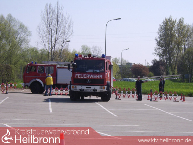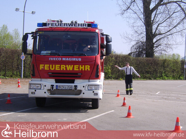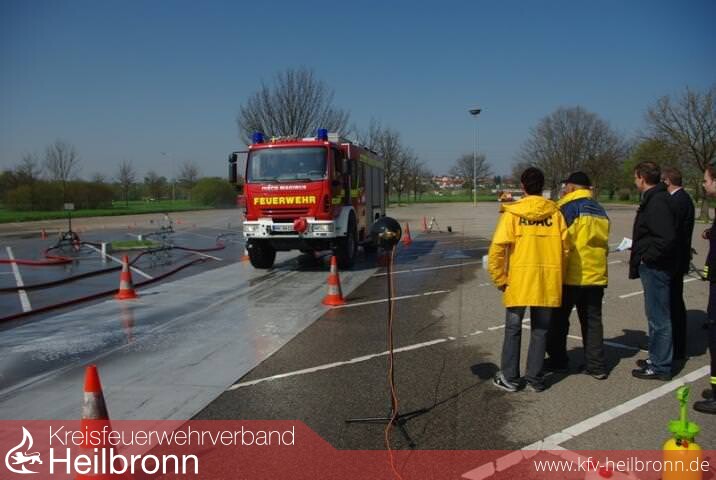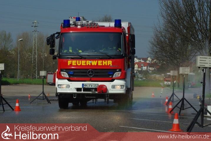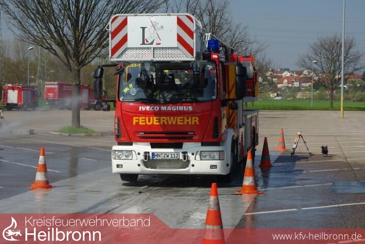 Zwei Tage lang bot sich den Zuschauern auf dem Parkplatz der Firma Kolbenschmidt Pierburg in Neckarsulm ein ungewohntes Bild: Feuerwehrfahrzeuge aller Gattungen rangieren, fahren, bremsen an verschiedenen Stationen. Ein Bild wie auf dem Verkehrsübungsplatz – nur mit etwas größeren Fahrzeugen.