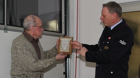 Bild 1: Kommandant Werner Seufer ehrt Rudolf Fuchs (links) für 70 Jahre Treue.