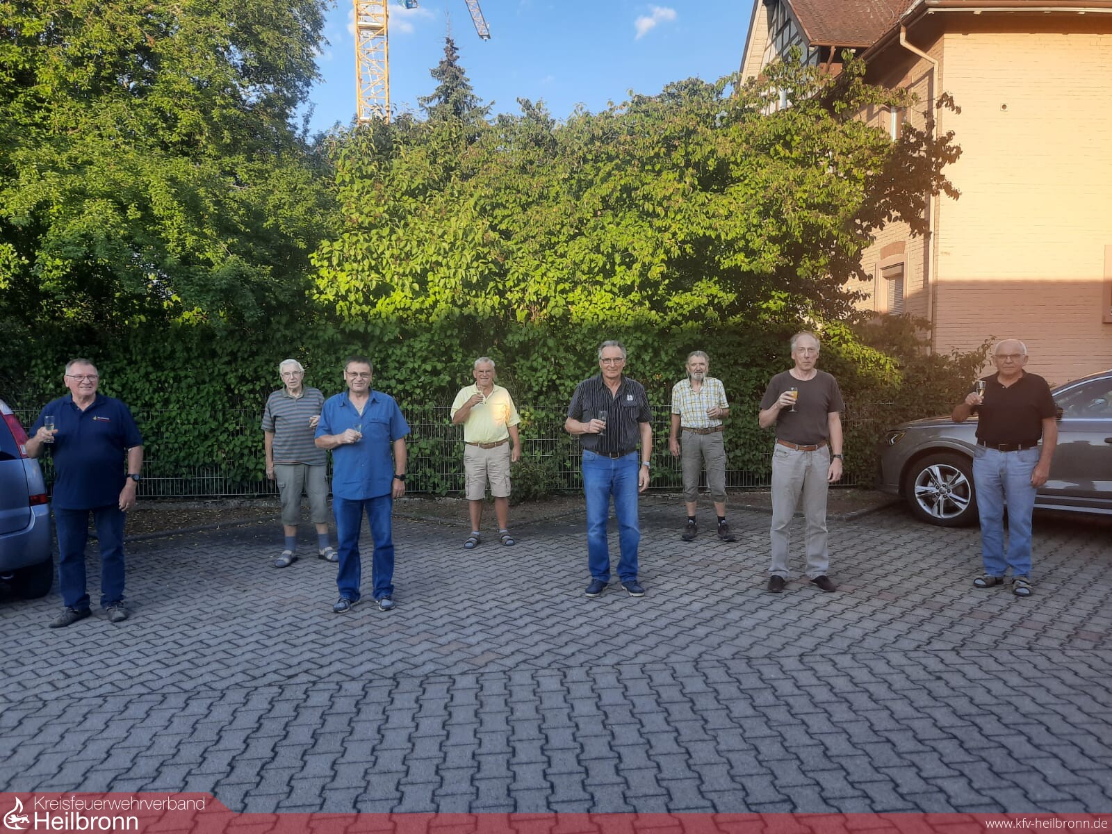 Nach den weiteren Lockerungen, u.a. Aufnahme des Übungsbetriebs bei den Feuerwehren in kleinen Gruppen unter Einhaltung von Abstands- und Hygienevorschriften, wurden von der Leitung und dem Ausschusses der Altersabteilung die diesjährigen Geburtstagskinder mit runden Geburtstagen zu einem Umtrunk im Freien in den Hof des Feuerwehrhauses eingeladen um nachträglich nochmals die Glückwünsche der Alterskameraden auszusprechen.