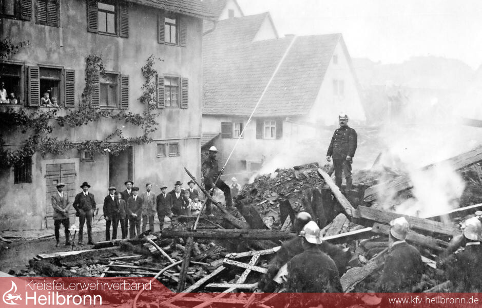 „Mit großer Anstrengung kämpfte die Wehr gegen das Feuer an, um ein weiteres Übergreifen auf umliegende Gebäude in der dicht bebauten Hauptstraße, der heutigen Zabergäustraße, zu verhindern“, schreibt Krysiak. Zur Unterstützung forderten die Kleingartacher die Nachbarwehr aus Niederhofen und die Motorspritzen der Hilfsorganisationen aus Böckingen und Heilbronn an.