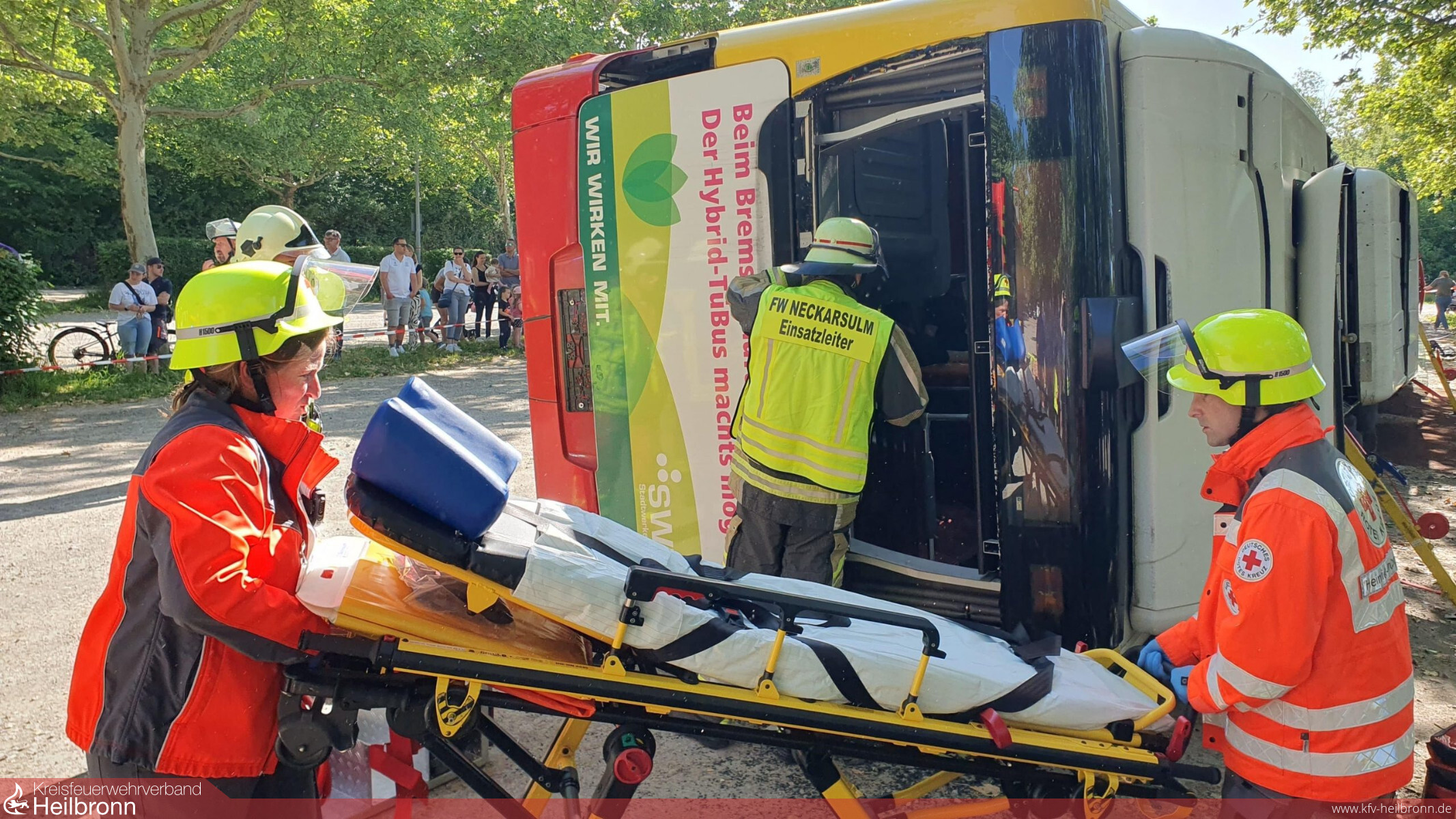Am Samstag, den 31. Mai 2025, fand auf dem unteren Parkplatz des Aquatolls in Neckarsulm eine groß angelegte Schauübung der Feuerwehr Neckarsulm statt. Ziel der Übung war, dass Zusammenspiel der beteiligten Hilfsorganisationen bei einem komplexen Verkehrsunfall realitätsnah zu üben und der Öffentlichkeit die Arbeit dieser näherzubringen.
