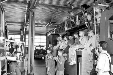 Auch hier gab's zunächst im Schulungsraum viele interessante Informationen. Überrascht waren die kleinen Gäste, als sie erfuhren, was die Ausrüstung der Feuerwehrleute so kostet. Immerhin sind Schutzjacke, Hose, Helm, Stiefel, Piepser, Gürtel mit Werkzeug und Karabinerhaken und Ausgehuniform zusammen rund 1450 Euro wert. Nicht inbegriffen sind dabei die Lampe, das Atemschutz- und das Handfunkgerät.