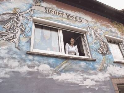 Jetzt, mehr als zwei Jahre später, ist sie mit ihrem Mann in das sanierte Haus zurückgekehrt. Um das Geschehene verarbeiten zu können, hat die 57-Jährige einen besonderen Weg gewählt. Zwei große Schutzengel prangen an der Fassade im Neuen Weg 5. Ein Bild, das ein befreundeter Künstler dort mit Pinsel und Dispersionsfarbe auf Acrylbasis gemalt hat. "Ich habe das gebraucht", sagt die Hausfrau. Die Engel sollen ihr und dem Haus "ein bisschen Sicherheit" geben, hofft sie. Sie nennt es einen symbolischen Schutzschild, der ihr "wichtig ist".