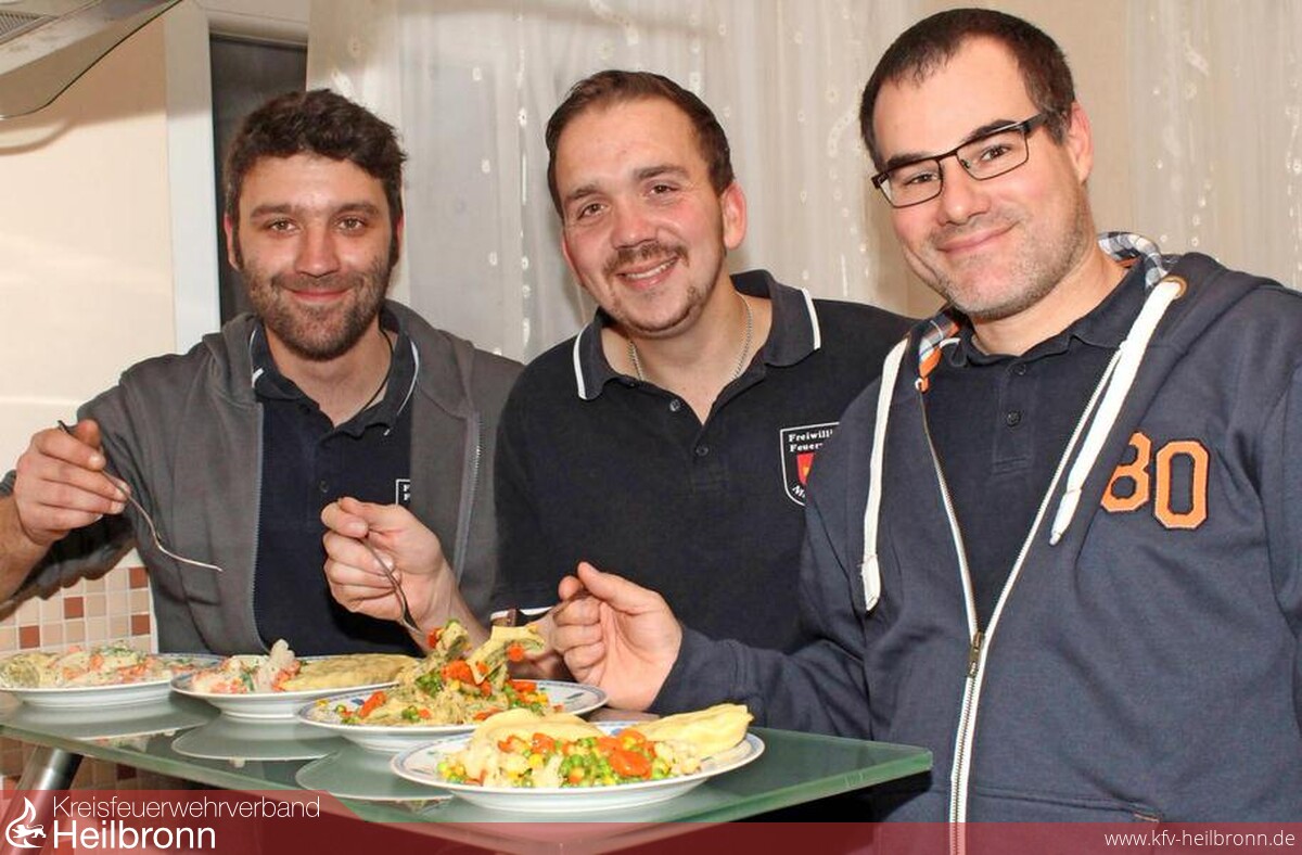 Heißer Dampf zieht durch die Küche des stellvertretenden Feuerwehrkommandanten Ruven Pahl in Niederhofen. Eifrig werden Karotten, Erbsen, Kohlrabi und Spargel in den Pfannen gerührt und gewendet, mit Sahne und Kräutern verfeinert und gegart. Abteilungskommandant Sandro Eßlinger, Ausschussmitglied Matthias Junge und Ruven Pfahl veranstalten einen Kochwettbewerb. Dabei sind die drei Floriansjünger Köche und Jury zugleich.