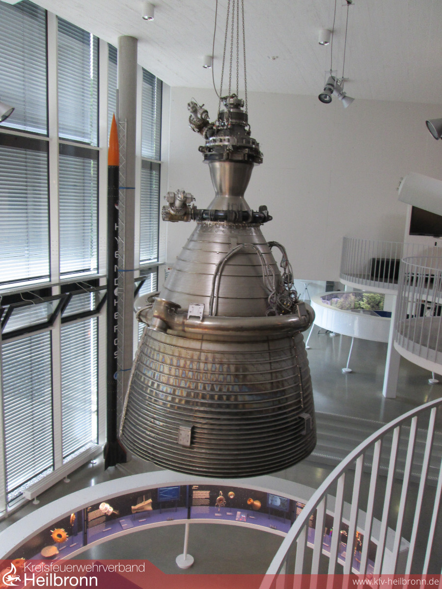 Am vergangenen Samstag besuchte der Alterszug mit ca. 50 Personen das Deutsche Zentrum für Luft- und Raumfahrt (DLR) in Lampoldshausen. Beim Eintreffen wurden wir von dem ehemaligen Chef Herrn Adolf Frank und seinem damaligen stellv. Herrn Dieter Balz empfangen. Diese beiden Herren waren schon zu den Anfängen vor 50 Jahren mit dabei und man merkt ihnen heute noch ihre Begeisterung für die Raumfahrt an. Zuerst sahen wir einen Film aus den Anfangsjahren des DLR- Lampoldshausen. Nicht alles lief immer reibungslos. Nach ihrem Renteneintritt vor 17 Jahren begannen die Herren eine Ausstellung aufzubauen. Ausgebrauchte Antriebe, Tanks und andere Versuchsobjekte wurden zusammengetragen und zu einer ansprechenden Präsentation aufgebaut. Die Triebwerksprüfstände am Standort Lampoldshausen stellen eine grundlegende Voraussetzung dafür dar, Antriebstechnologien bis zu ihrer Einsatzreife zu entwickeln und ihre Qualität sicherzustellen. Hier werden alle Arianetriebewerke vor ihrem Einsatz getestet. Dazu werden riesige Mengen an Treibstoff benötigt. Bei einem Test werden mehr als 1.000 Liter Treibstoff pro Sekunde benötigt und so ein Test dauert meist mehr als 15 Minuten. So mancher war von den Dimensionen beeindruckt.
